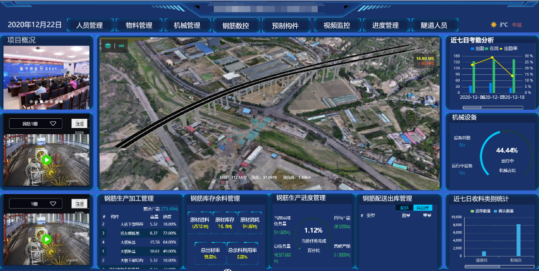數(shù)字基建現(xiàn)場智慧管控平臺(tái)借助物聯(lián)網(wǎng)、云計(jì)算、大數(shù)據(jù)、VR/AR多媒體、北斗定位、區(qū)塊鏈等技術(shù),以提升工程建設(shè)安全和質(zhì)量為重點(diǎn),以“信息系統(tǒng)服務(wù)于管理提升與效率”為建設(shè)原則,以自有平臺(tái)為技術(shù)架構(gòu)核心,融合BIM+GIS及物聯(lián)網(wǎng)平臺(tái),推進(jìn)基于BIM技術(shù)為支撐的三維設(shè)計(jì)、工程管控,實(shí)現(xiàn)對設(shè)計(jì)、施工、進(jìn)度、質(zhì)量、安全等各環(huán)節(jié)工作過程數(shù)據(jù)的深度融合和一體化展示;同時(shí)與人員、機(jī)械、車輛、物資、工法、環(huán)境等業(yè)務(wù)相結(jié)合,實(shí)現(xiàn)工程全過程的數(shù)據(jù)自動(dòng)采集、智能分析及智能預(yù)警;通過人機(jī)交互、感知、決策、執(zhí)行和反饋,客觀分析施工場域的進(jìn)度、安全、質(zhì)量及風(fēng)險(xiǎn)等的特征和規(guī)律,將虛擬的業(yè)務(wù)系統(tǒng)與真實(shí)世界的場景深度融合,實(shí)現(xiàn)“施工現(xiàn)場全面感知”、“工程建設(shè)綜合指揮”、“工程BIM全生命周期管控”、“安全教育沉浸體驗(yàn)”的建設(shè)目標(biāo),全面實(shí)現(xiàn)施工現(xiàn)場的管理智慧化、生產(chǎn)智慧化、監(jiān)控智慧化和服務(wù)智慧化。